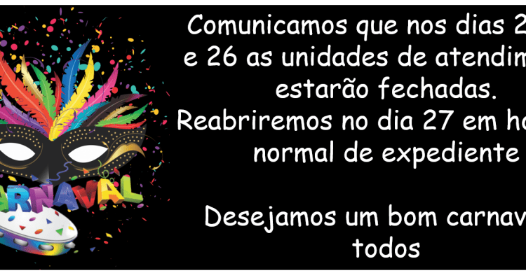 Comunicamos que nos dias 24,25 e 26 as unidades de atendimento estarão fechadas. Reabriremos no dia 27 em horário normal Leia Mais
