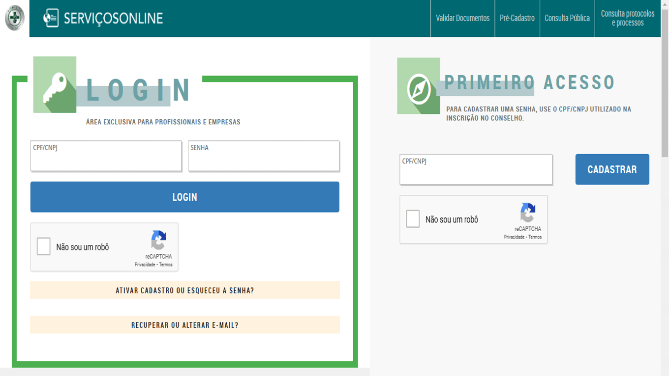 ATENÇÃO – Se você está acessando o sistema pela 1ª vez siga os passos do primeiro acesso.