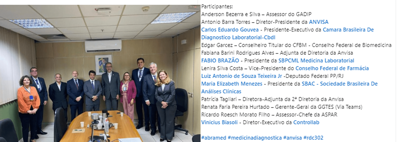 Na pauta, foi abordada a necessidades de conclusão da revisão da RDC 302, que trata do funcionamento de laboratórios clínicos e da realização de exames. Todas as entidades estão confiantes em uma nova proposta de RDC, incluindo as sugestões enviadas por meio de consulta e audiência pública realizada pela Agência.